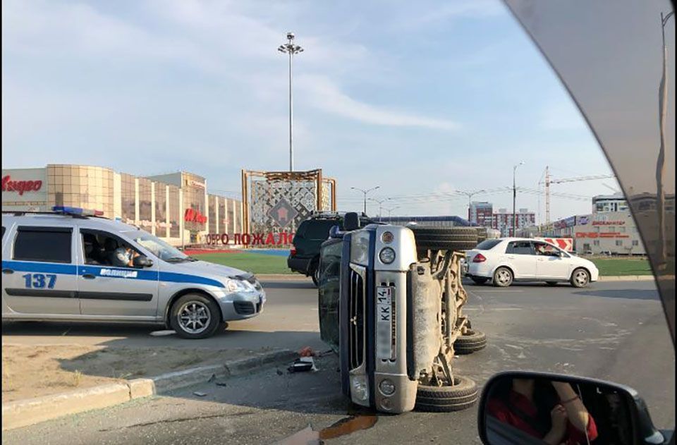 ДТП произошло на кольцевой развязке по улице 50 лет Октября. Как сообщили ЯСИА в республиканском управлении ГИБДД, участниками ДТП стали автомобили Mitsubishi Padjero и Toyotа Premio.