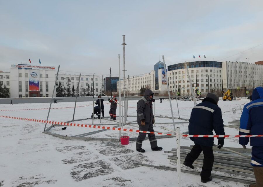 На площади Ленина в Якутске приступили к установке новогодней ёлки. По словам монтажников, работы завершатся в течение двух недель.