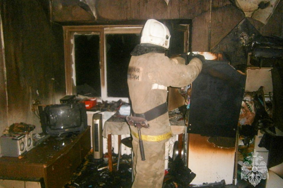 Пожар повредил дверной проем и полы одной из квартир дома на площади 4 кв. м. Здесь же пожарные обнаружили труп мужчины.
