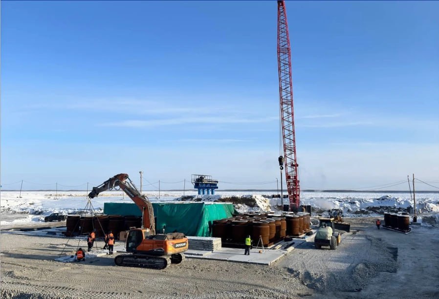 На технологической площадке № 1 ведётся изготовление арматурных каркасов буронабивных свай для основной опоры будущего Ленского моста. Высота конструкции составит 285 метров. Параллельно строится тёплый склад для инертных материалов: специалисты монтируют сэндвич-панели и подготавливают помещения к работе в условиях низких температур.