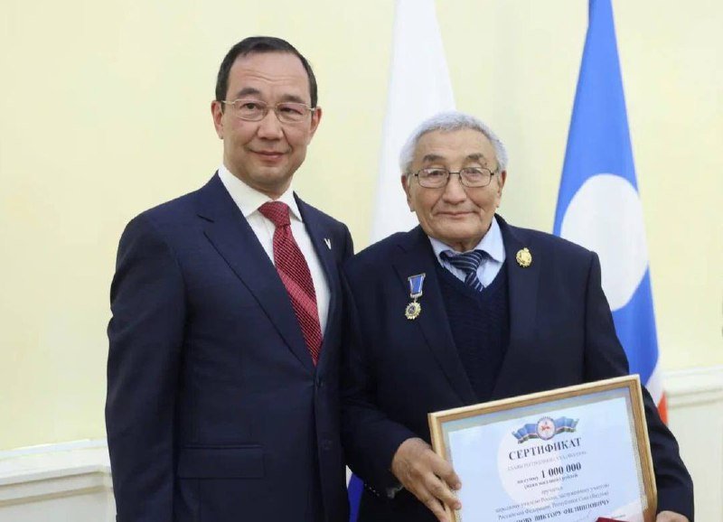 В Якутске состоялось торжественное чествование народного учителя России Виктора Филипповича Потапова, приуроченное к его 75-летию. Глава Якутии Айсен Николаев лично поздравил выдающегося педагога и вручил ему знак отличия «Гражданская доблесть» за особые заслуги в области образования и воспитания подрастающего поколения, а также за значительный вклад в социально-экономическое развитие республики.