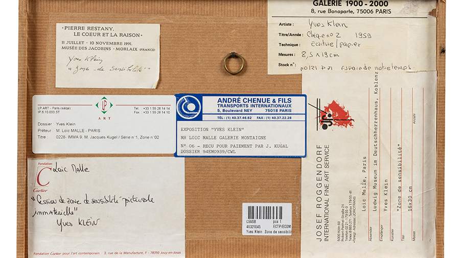 На аукционе Sotheby’s был продан лот под названием «Зона нематериальной изобразительной чувствительности», который относится к знаменитому перформансу художника-концептуалиста Ива Кляйна, состоявшемуся в 1958 году.