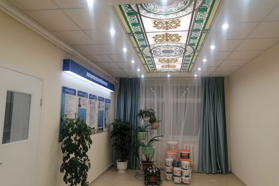 В двухэтажном каменном здании площадью 2530 квадратных метров созданы все условия для развития детей, кабинеты оснащены современным оборудованием. Здесь расположены столовая на 48 мест, спортивный и актовый залы, библиотека, мастерская для уроков труда, медицинский блок, гардеробные и кружковые кабинеты.