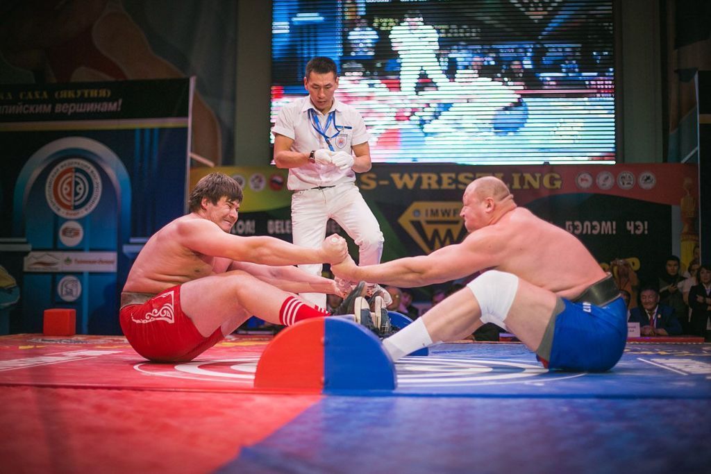 - мужчин – шорты для мас-рестлинга (облегающие или свободного покроя) установленного МФМ образца, красного или синего цвета (по жребию).