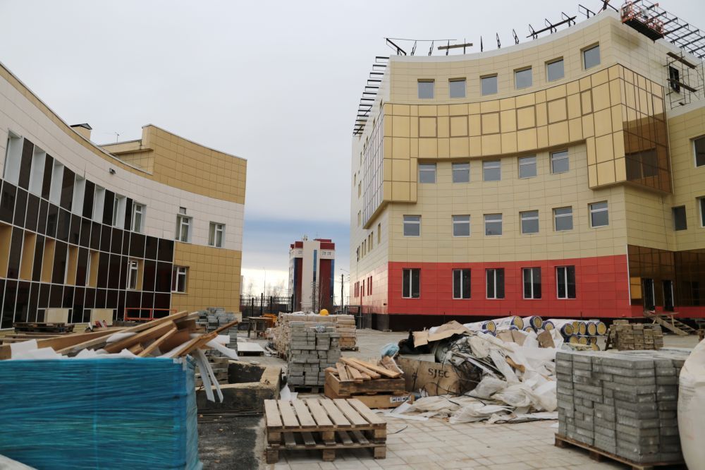 Игорь Видман в первой половине четверга провели выездное совещание на площадках социальных строек. Традиционно начали осмотр с Дворца детства, где в отделочных работах возникла некая пауза, связанная с оформлением подрядчиком текущей документации, необходимой для оплаты уже произведенных работ. Установившаяся сухая погода пока позволяет строителям завершить обустройство прилегающей территории, чтобы поздней осенью полностью сосредоточится на внутренней отделке и монтаже фасада здания, выходящего на улицу Ойунского.