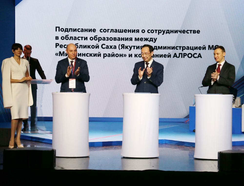 В ходе состоявшего Хозяйственного актива АЛРОСА был подписан трехсторонний документ, пока не имеющий аналогов в Якутии – Соглашение о сотрудничестве в области образования между РС (Я), Мирнинским районом и АК «АЛРОСА». Документ подписали