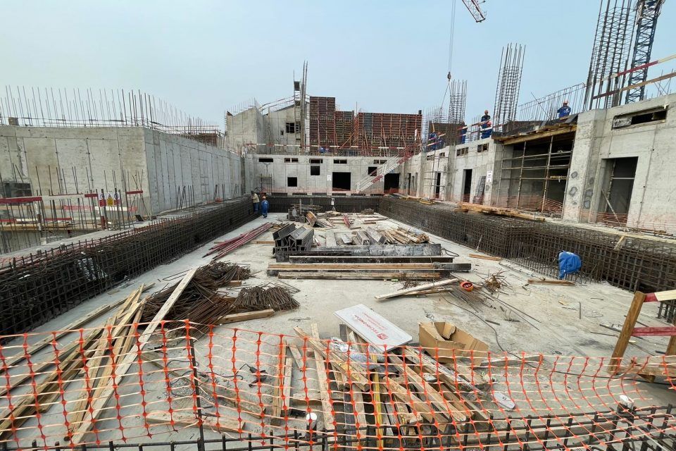 В управлении отметили, что сейчас в строительстве задействованы 950 человек. Во время проверки были осмотрены работы по армированию и бетонированию стен школьных корпусов, чаши бассейна, теплых автостоянок, а также вертикальной планировки территории. Особое внимание было уделено качеству пароизоляции кровли и устройству утеплителя наружных ограждающих конструкций.