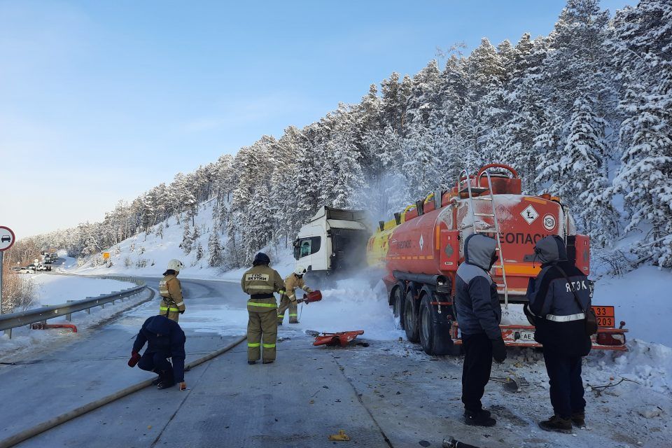 По информации спасателей, бензовоз направлялся из Якутска в сторону Колымы на участок «Дэбин». Рядом с переправой у Нижнего Бестяха грузовик столкнулся с самосвалом.