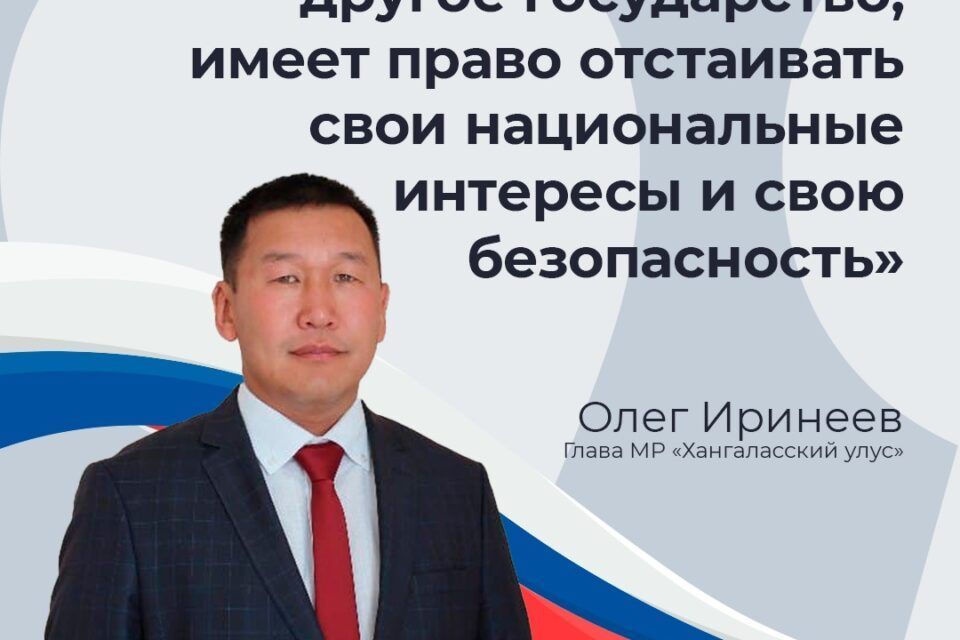 Глава МР «Хангаласский улус» Олег Иринеев поддерживает решение президента РФ о признании независимости Донецкой и Луганской народных республик.