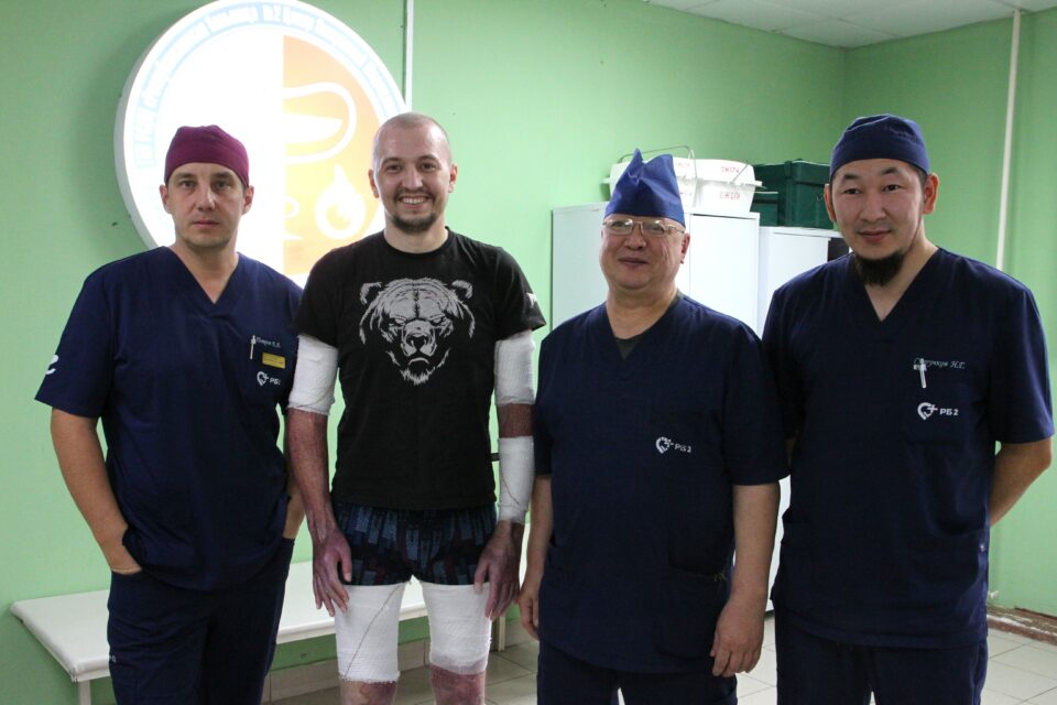 Пациент пробыл в ожоговом центре 72 дня, врачи выполнили в общей сложности пять больших операций: два этапа некрэктомии поражённой кожи и три этапа свободной аутодермопластики ран (операция по пересадке кожи).