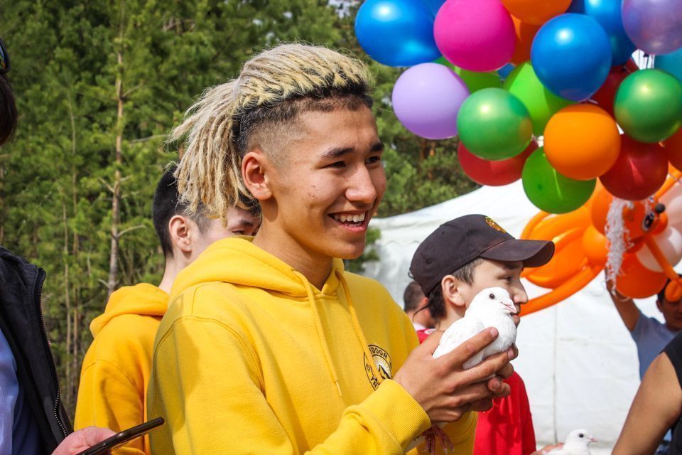 В знак открытия летнего сезона запустили голубей и шары.