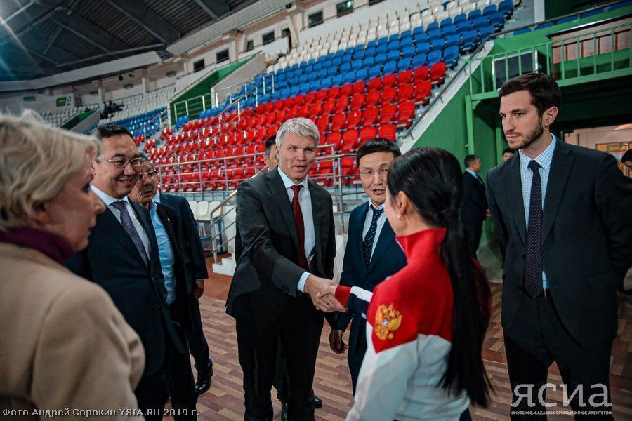 Министр спорта России Павел Колобков и глава республики Айсен Николаев осмотрели Центр спортивной подготовки в «Триумфе», а также встретились с лучшими атлетами и тренерами.