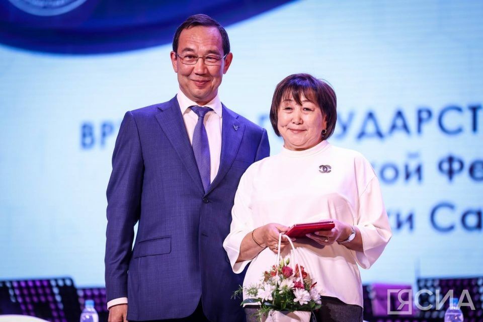 За выдающиеся достижения в образовательной деятельности педагогов Якутии отметили высокими государственными наградами страны и республики. Их вручил глава региона Айсен Николаев на пленарном заседании Августовского совещания педагогических работников.