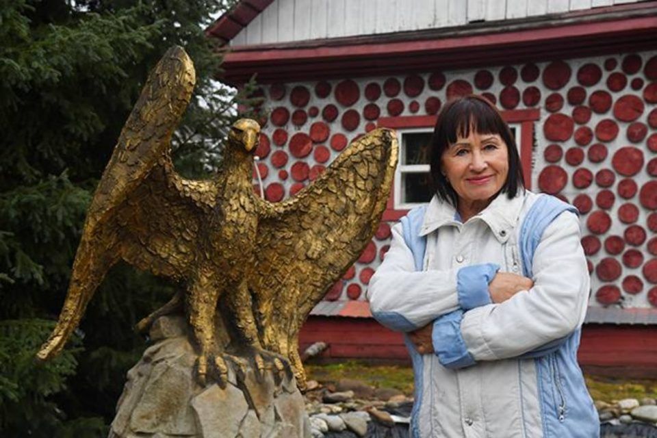 Жительница поселка Чульман Нерюнгринского района Галина Баранова построила в своем дворе декоративный пруд со скульптурой золотистого орла. Здесь 76-летняя пенсионерка ухаживает за растениями, в том числе японской сакурой, угощает белок и птиц и называет свой дом «лучшим местом».