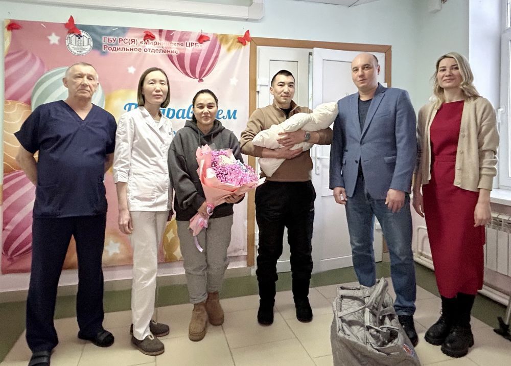 В роддоме Мирного прошла первая выписка нового, 2025 года. У Асхата и Айданы родилась их первая дочь. Девочку назвали Карачач. Супругов поздравил Александр Басыров. Глава Мирнинского района напомнил о народном поверье, что девочки рождаются к миру и вручил молодой семье традиционный набор новорожденного, в котором есть все необходимое на первое время (от пеленок до мехового комбинезона). Ребята живут в Удачном, работают на предприятиях АЛРОСА.