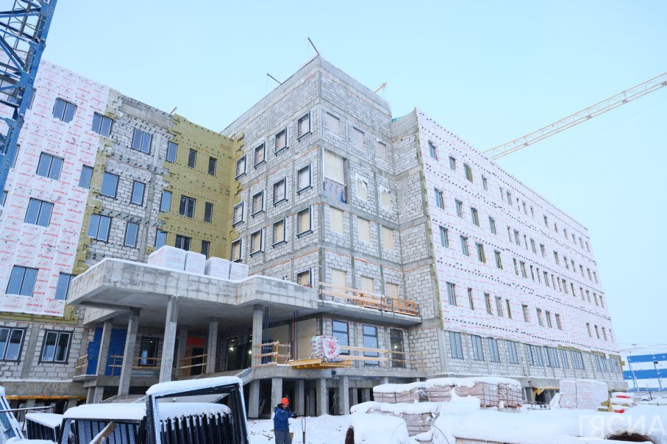 В июне 2025 года планируют завершить строительство первой умной поликлиники в Якутске. На сегодняшний день строительная готовность нового здания поликлиники городской больницы № 2 составляет 65%.