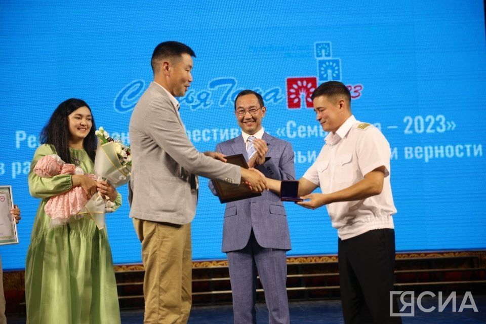 Семье миллионного жителя Якутии Саины Онуфриевой вручена памятная медаль. Её во время фестиваля «Семья года — 2023» передал первый миллионный житель региона Василий Герасимов.