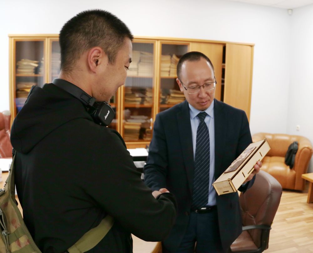 Георгий Башарин вручил солдату традиционный якутский клинок с памятной надписью.