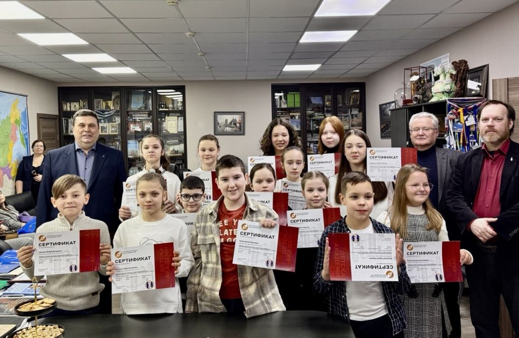 Сегодня в торжественной обстановке председатель Союза журналистов России Владимир Соловьёв вручил сертификаты первому выпуску Детской Академии СЖР.