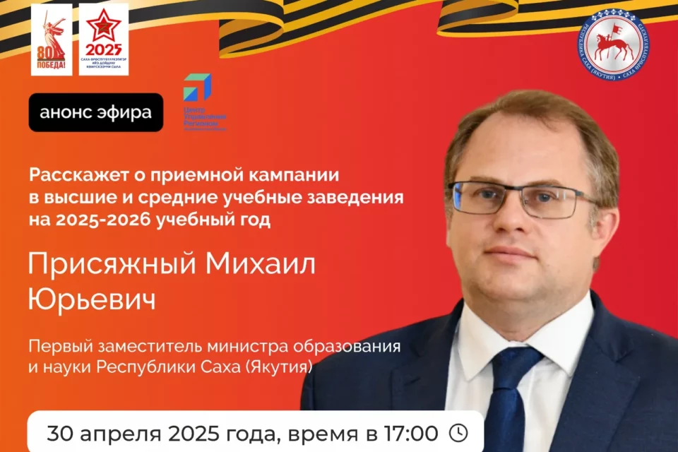 Первый заместитель министра образования и науки Якутии Михаил Присяжный в среду, 30 апреля, проведет прямой эфир на официальных страницах администрации главы и правительства республики SakhaGov в социальных сетях «ВКонтакте» и «Одноклассники» совместно с ЦУР Якутии.