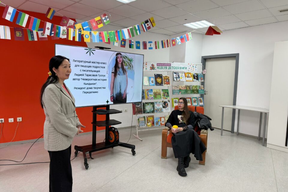 Встреча прошла в рамках Всероссийской недели детской книги. Лидия Тарасова — Туллук не только пообщалась с аудиторией, но и провела для ребят мастер-класс по писательскому мастерству.