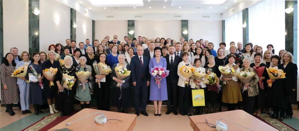 Зал стоя аплодировал тем, кто посвятил свою жизнь благородной профессии учителя. Всем ветеранам педагогического труда, принявшим участие в мероприятии, глава лично вручил цветы.