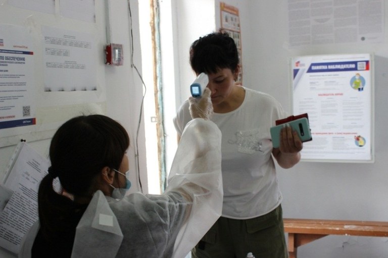«У нас все идет хорошо, люди постепенно подходят, очереди нет. Избиратели проходят через медицинский контроль, где измеряется температура тела, дезинфицируют руки, выдаются средства индивидуальной защиты, одноразовая ручка. На расстоянии показывают паспорт и получают бюллетень, проходят в кабину и опускают ее в урну. Никаких нарушений не выявлено, все спокойно, присутствуют наблюдатель Общественной палаты Якутии и представитель отдела полиции», – сообщила председатель участковой комиссии Светлана Сидорова.