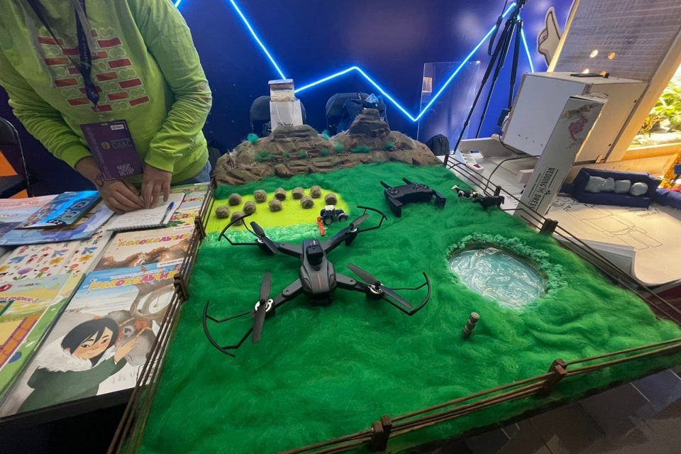«Нас в команде трое человек, ученики 10 и 11 класса. Мы создали макет с полем, здесь показан сезон сенокоса. Задача дрона – выявить точные координаты при случае, например, поломки забора. Это полностью ручная работа кроме дрона», – рассказала учительница русского языка и литературы школы Ульяна Иванова.
