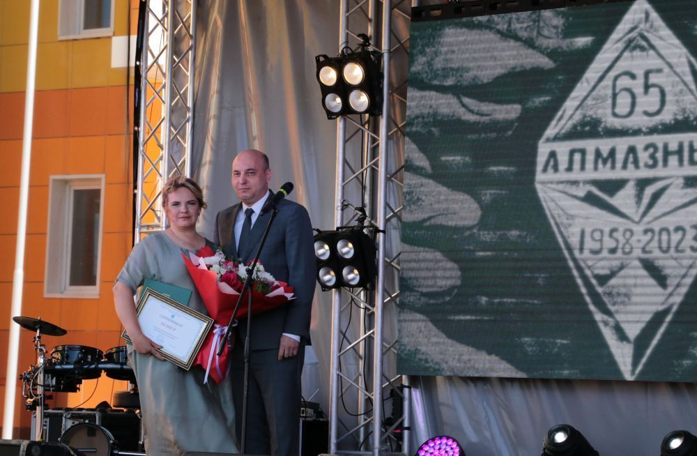 Алмазнинцев с замечательной датой поздравили также главный инженер АК «АЛРОСА» Марат Айгистов, заместитель генерального директора АК «АЛРОСА» Алексей Дьячковский, председатель районного совета депутатов Андрей Кузнецов, председатель контрольно-счетной палаты МО «Мирнинский район» Елена Полякова, лидер общественного движения «Народный актив» Павел Шелехов, председатель Мирнинского отделения Ассамблеи народов РС(Я) Гульсум Бейсембаева и другие.
