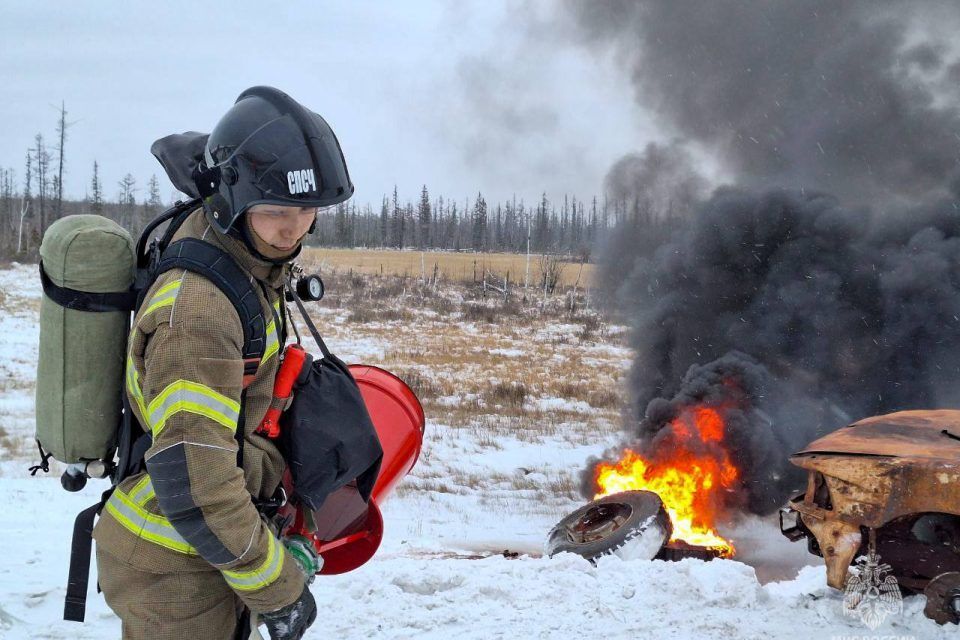 В ходе тренировки группа спасателей отточила навыки по вызволению погибшего, которого зажало в горящем автомобиле.