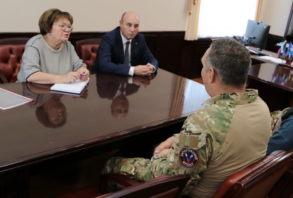 Александр Басыров на таких встречах всегда интересуется какие проблемы актуальны для бойцов, их семей, как они снабжаются и если в чем-то особая потребность. В завершении беседы глава района вручил отпускникам якутские клинки с памятной надписью.