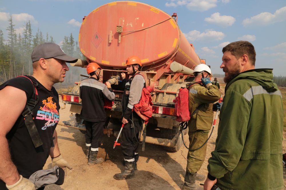 С одной стороны, огонь сдерживают пожарные и специалисты нефтяной компании. А в паре километров, за лесным участком огню противостоят уже бойцы «Якутлесресурса». Во второй половине дня, группировка занятая на тушении пожара в районе Маччобинского месторождения была еще усилена, сюда вертолетом перебросили 11 десантников Мирнинского авиаотделения. Ранее они были задействованы на тушении пожаров в Сунтарском улусе.