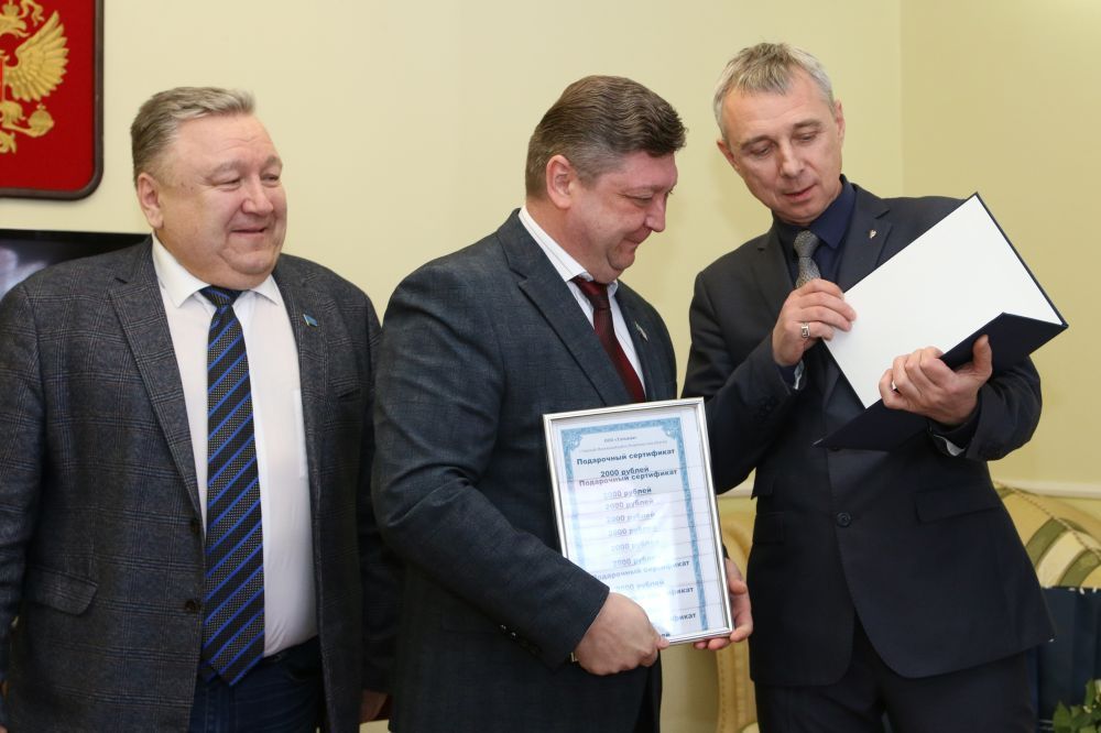 Глава города Артур Приходько и председатель городского Совета депутатов Вячеслав Файзулин поздравили в лице руководителя Владимира Карпенко всех работников предприятия-юбиляра и вручили муниципальные награды.