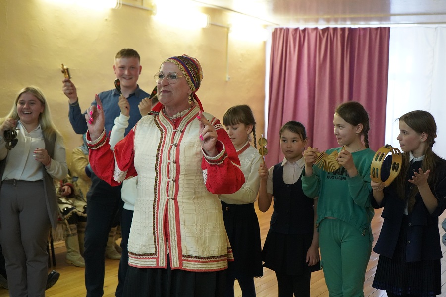 Далее в Покровской СОШ N4 был проведен урок межнационального общения «Этномир Якутии» специалистами Дома дружбы при участии ансамбля потомков государевых ямщиков «Ямские бубенцы», эвенского этнофольклорного ансамбля «Долгунча», представителя Ассоциации корейцев г. Якутска Надежды Ха.