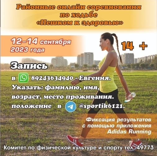 С 12 по 14 сентября в режиме онлайн с использованием приложения Adidas Running состоятся районные онлайн соревнования по ходьбе