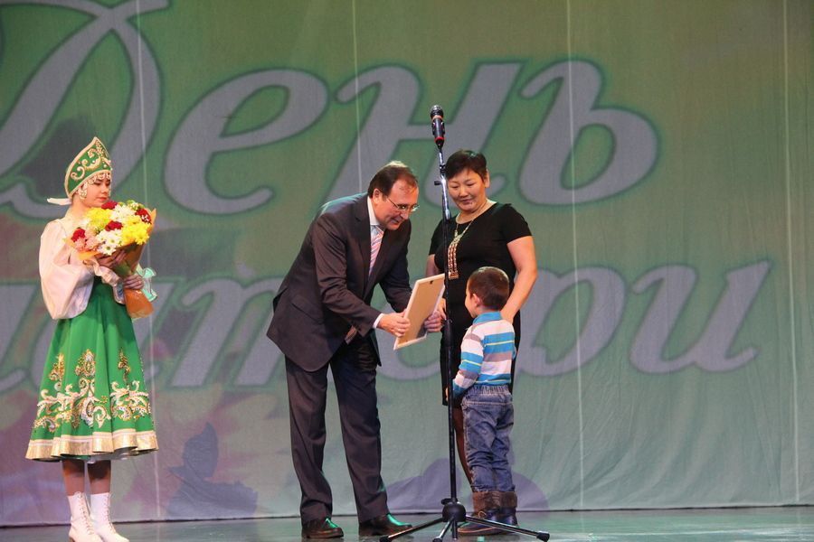 Глава Мирнинского района Ришат Юзмухаметов со сцены тепло поздравил всех находящихся в зале мам с праздником, который по традиции отмечается в последнее воскресение октября. Он пожелал им здоровья, семейного и материнского счастья, чтобы дети ценили их труд и окружали заботой.