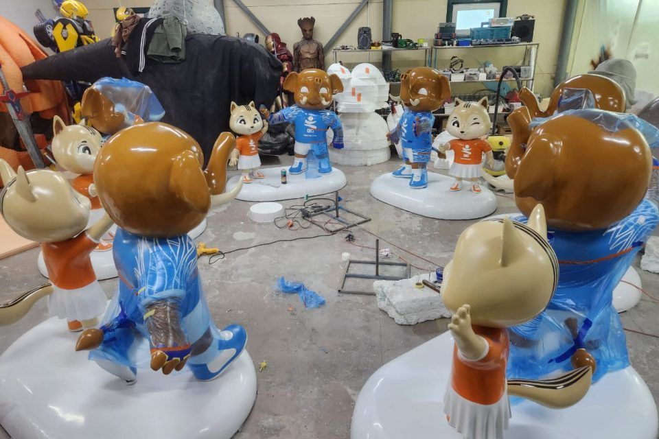 Дизайн экспонатов команда начала разрабатывать с ноября 2023 года, когда были определены образ и имена талисманов международных игр.