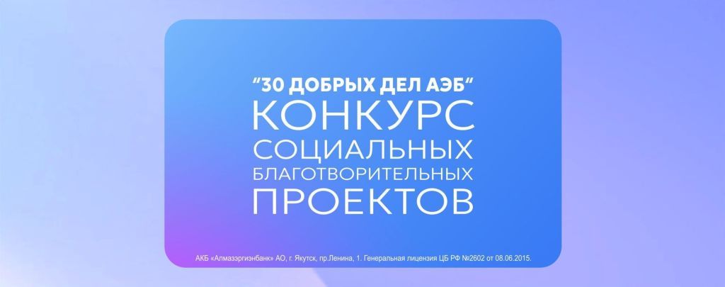 Напомним, к своему 30-летнему юбилею Алмазэргиэнбанк объявил конкурс социальных и благотворительных проектов «30 добрых дел АЭБ» для социально ориентированных некоммерческих организаций и социальных предпринимателей.