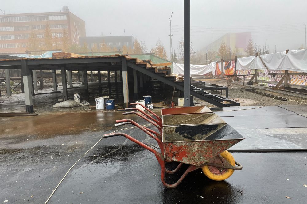На Центральной площади Удачного муниципальные подрядчики были вынуждены временно приостановить работы по обустройству сцены-террасы, примыкающей к городскому рынку.