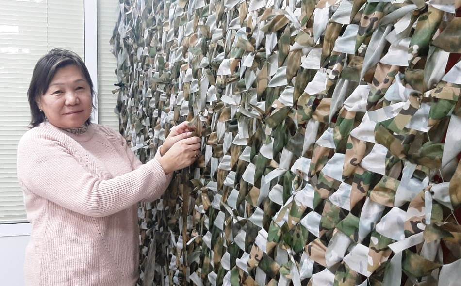 На прошлой неделе главный бухгалтер объединенного профсоюза ГУП «ЖКХ РС(Я)» Полина Будаева, председатели профкомов исполнительной дирекции Екатерина Гейс и филиала «Коммункомплектация» Ольга Сергеева участвовали в изготовлении маскировочных сеток для военнослужащих.