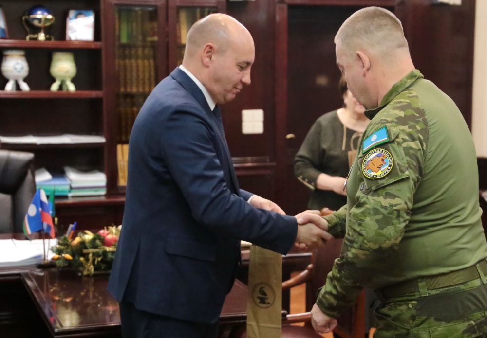Один из ребят пришел на встречу с сыном. И это правильно, мальчишке полезно видеть, как отцу от имени главы Якутии вручают подарочный клинок. Александр Басыров рекомендовал бойцам обращаться к нему по любым актуальным для них вопросам. Администрация района, наши партнеры помощь участникам СВО и семьям солдат оказывают на постоянной основе.