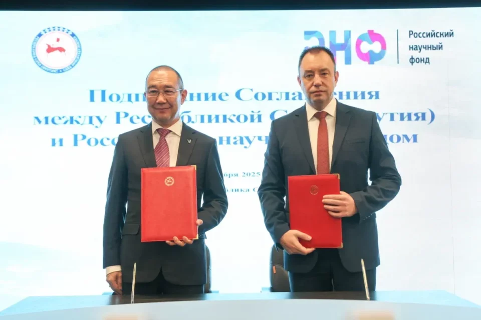 Якутия и Российский научный фонд заключили соглашение о сотрудничестве в сфере поддержки фундаментальных, прикладных и поисковых научных исследований. Документ подписали глава республики Айсен Николаев и заместитель генерального директора Российского научного фонда Андрей Блинов.