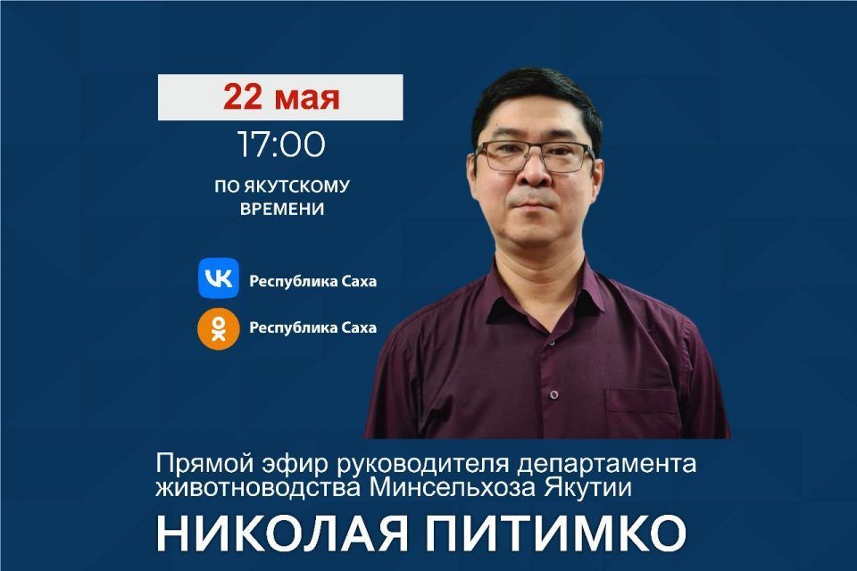 В понедельник, 22 мая, руководитель департамента животноводства, племенного дела, кооперации и фермерства Минсельхоза Якутии Николай Питимко проведет прямой эфир в социальных сетях.