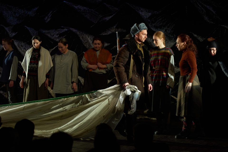 «Запасной аэродром» — это пронзительный спектакль о судьбах тех, кто строил аэродромы на севере в годы Великой Отечественной войны. В том числе об истории репрессированных, вся вина которых зачастую заключалась во всего-то «не той фамилии» или «не вовремя рассказанном анекдоте». Их имена занесло снегами, но эти люди дышали, смеялись, мечтали и любили, добавили в театре.