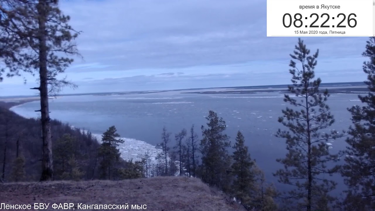 За прохождением ледохода на реке Лене у Кангаласского мыса можно наблюдать онлайн. Трансляция ведется Ленским бассейновым водным управлением.