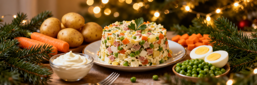 Несмотря на славу исконно русского салата, оливье был придуман французским поваром Люсьеном Оливье (он был шеф-поваром московского ресторана «Эрмитаж»). Первоначальный рецепт был утерян, впрочем, по некоторым данным, сам автор блюда постоянно его менял в зависимости от платежеспособности гостя и сезона. Известно, что изначальный состав салата отличался от современного: в нем фигурировали рябчики, оливки, фасоль. В некоторых интерпретациях были раковые шейки, телячий язык и другие компоненты. Оливье считалось дорогим блюдом.