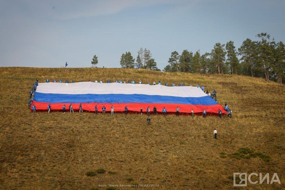 В День Государственного флага РФ на сопке Чочур Муран в Якутске развернули самый большой триколор на Дальнем Востоке. Всего за пять дней флаг России размером 35*23 метра изготовили активисты женсовета Сайсарского округа Якутска. Событие будет зарегистрировано в Книге рекордов России, сообщает ЯСИА.
