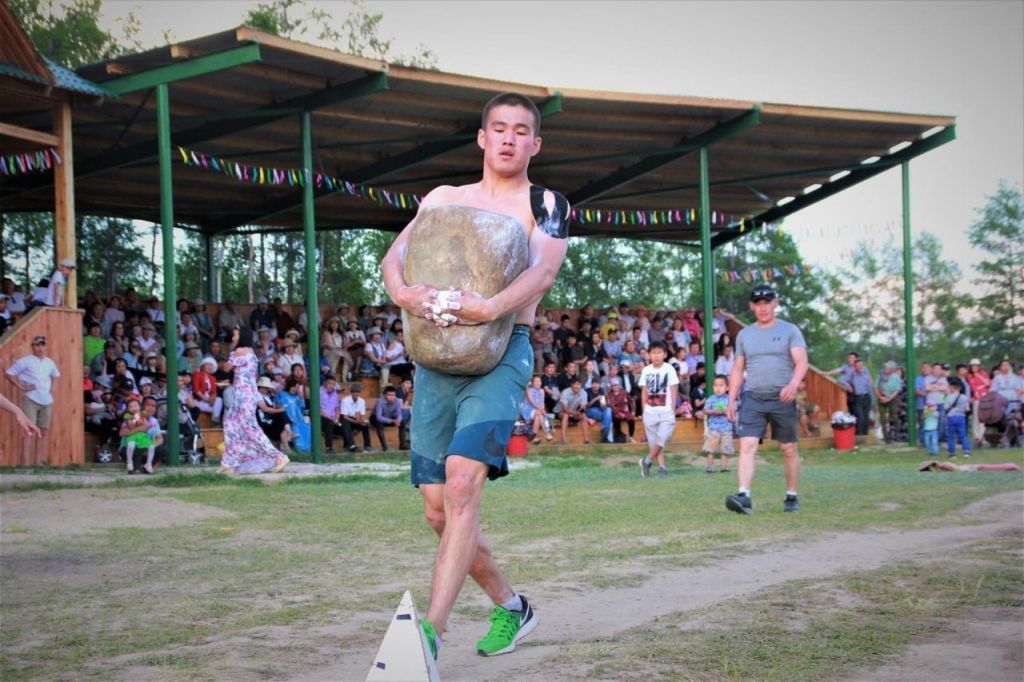 За главный приз турнира по многоборью «Боотур Мюрю» — 40 тысяч рублей — сразились шестеро местных атлетов. В программу состязаний вошли хапсагай, бег на 400 метров, национальные прыжки, якутская вертушка и переноска камня весом 110 кг.