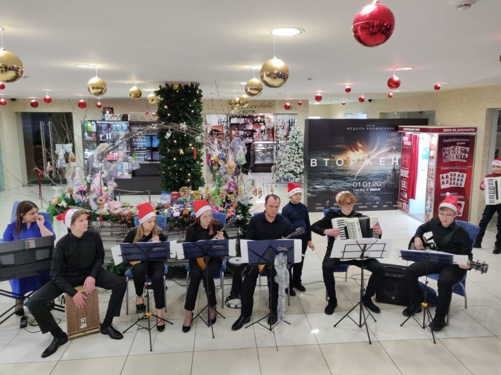 В канун Нового года в торгово-развлекательном Центре «Чудо-парк» звучала музыка в исполнении оркестра народных инструментов.