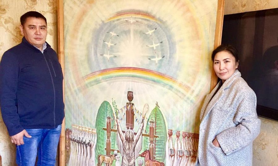 «Мы рады, что картина будет висеть в стенах школы родного наслега моего отца. Посчитали, что полотно «Алгыс» более уместно для юбилейного мероприятия и молодого поколения, так на нем изображен традиционный священный обряд благословения», — сообщила ЯСИА Айталина Степанова.